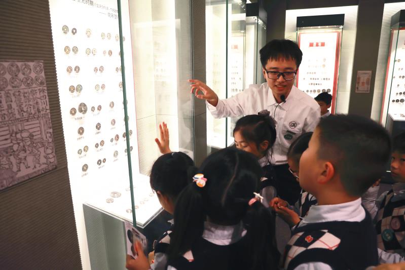 “从唐代开始,中国钱币使用‘通宝’称谓的‘宝文钱’一直沿用到清朝。仔细看,‘开元通宝’四个字也大有来头,这是唐代书法家欧阳询亲笔题写的。”新学期伊始,在上海财经大学商学博物馆,上海财经大学“育衡宣讲”团成员、财税学院大三生尹嘉金从钱币的发展讲起,给上海财经大学附属临港中学的学生们带来一节特殊的博物馆研学课。